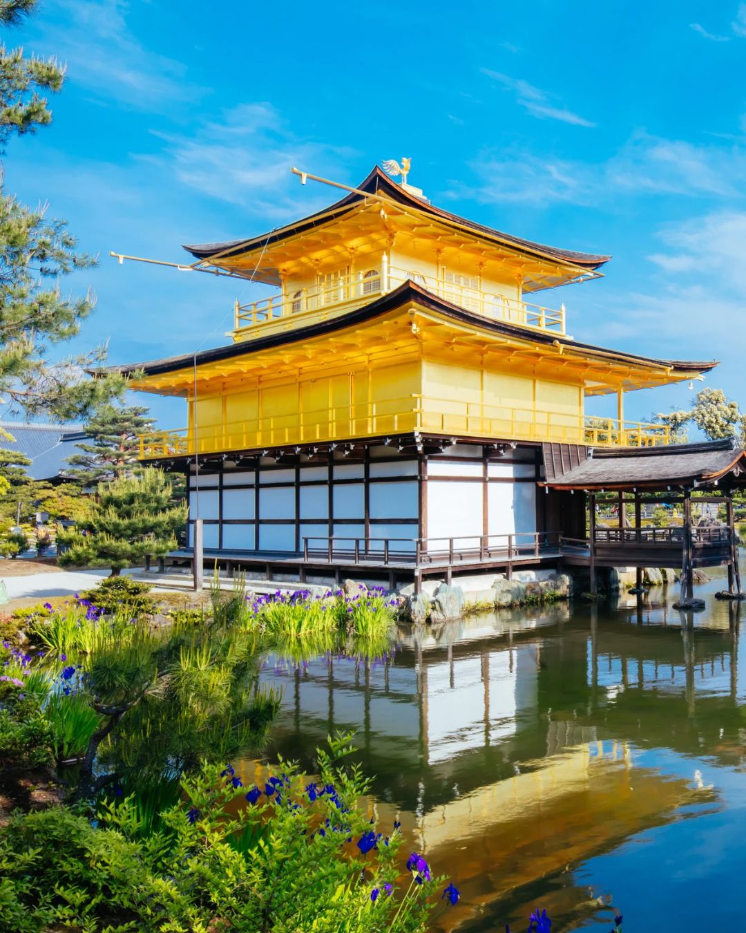 Como um renomado templo zen-budista com séculos de história, o Templo Rokuonji é mais conhecido hoje como Templo Kinkakuji – um nome derivado do famoso Pavilhão Dourado (salão de relicários) que serve como o ponto principal do terreno do templo. Este pavilhão de três níveis, coberto de folhas de ouro, é uma das estruturas históricas mais famosas e peculiares de Quioto. Agora um Patrimônio Mundial da UNESCO, o templo é considerado um destino imperdível pelos visitantes da cidade verdejante.